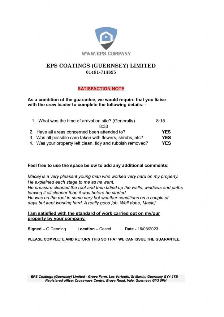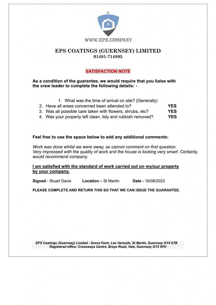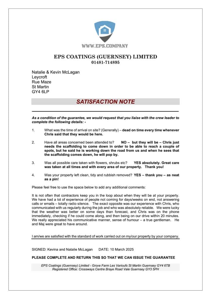 We would definitely recommend EPS coatings (Jersey) Ltd to anyone considering renovating the outside of their property.